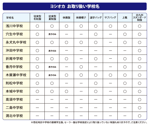 令和7年度新入生より香月中学校体操服、八児中学校サブバッグの取り扱いはございません。