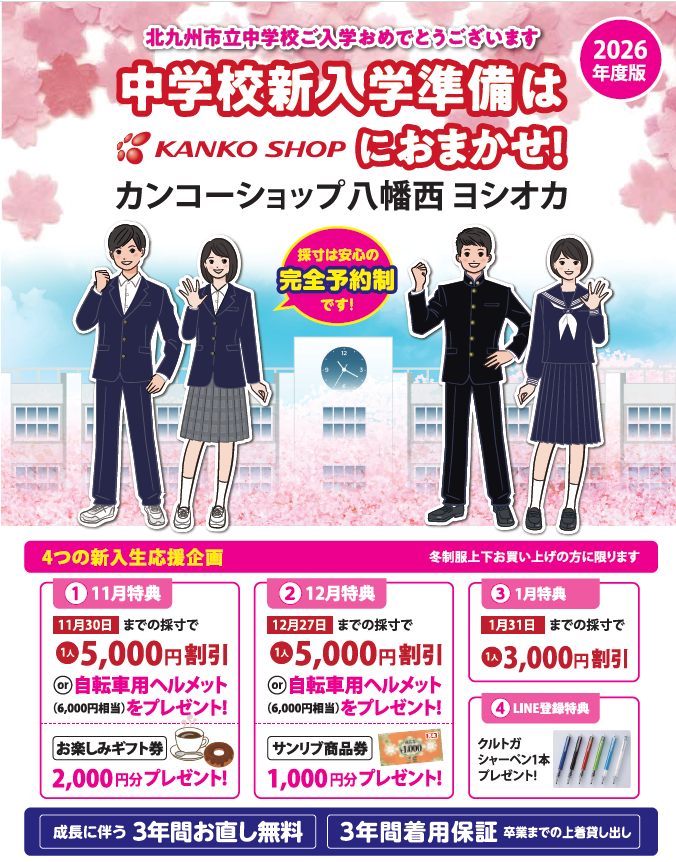 いつもカンコーショップ八幡西ヨシオカをご利用いただきありがとうございます。